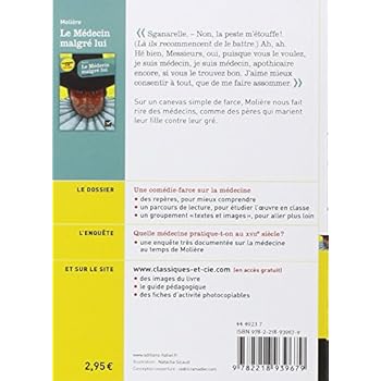 Pour se venger de Sganarelle, son mari qui boit et qui la bat, Martine raconte qu'il est médecin, mais qu'il faut le battre pour qu'il le reconnaisse...Sur un canevas simple de farce, Molière nous fait rire des médecins, comme des pères qui marient leur fille contre leur gré. L'édition Classiques & Cie CollègeSoigneusement annoté, le texte de la pièce est associé à un dossier illustré, qui comprend :- un guide de lecture, avec des repères, un parcours de l'oeuvre en 7 étapes, un groupement de documents sur le thème du mariage,- une enquête documentaire : "Quelle médecine pratique-t-on au XVIIe siècle ?".